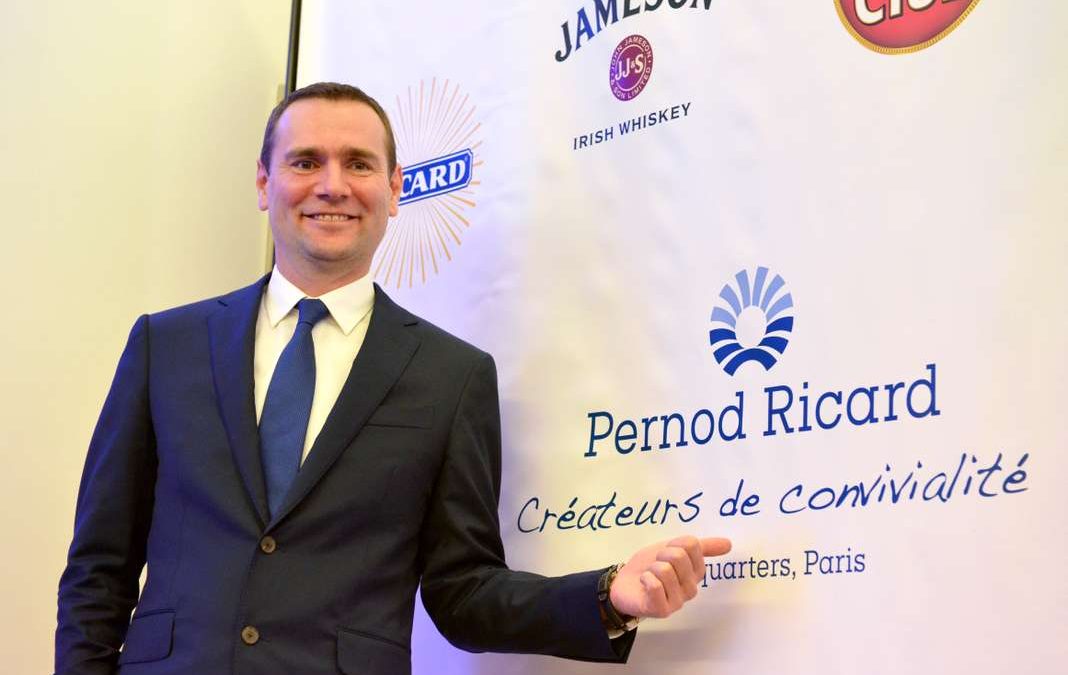Alexandre Ricard, CEO and chairman of French distilled beverage company Pernod Ricard, poses before presenting the group’s half-year 2015/16 results at the group’s headquarters in Paris on February 11, 2016. / AFP PHOTO / ERIC PIERMONT